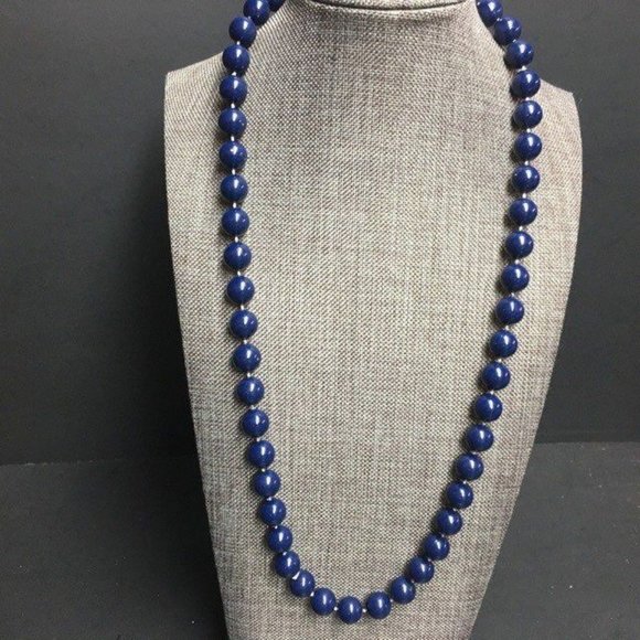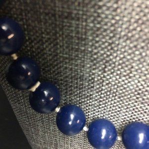 Round Bead Necklace As Is Dark Blue Silver Hook Retro Classic