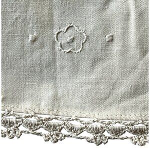 This round tablecloth, featuring a Madeira style appliqué with floral motifs, exudes an elegant and sophisticated charm. Its 34-inch diameter makes it suitable for smaller tables or as a topper, providing a decorative touch to dining settings. Crafted from cotton in a neutral beige hue, it complements various interior styles.