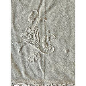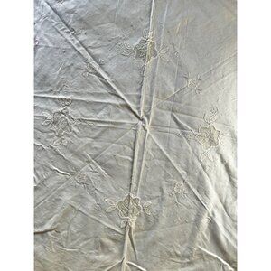 Round Beige Cotton Tablecloth With Madeira Style Appliqué Floral Design 34" Dia.