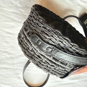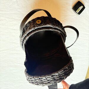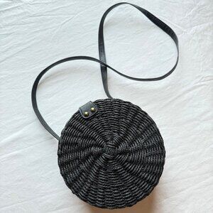 Round Black Woven Crossbody Bag W Leather Strap Magnetic Closure By World Market
