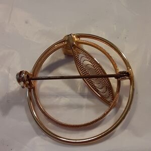 Round Brooch with Scarlet Gem. Goldtone Gently Used