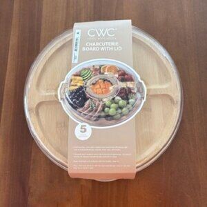 Round Charcuterie Board with Lid (5 Compartments) and (4) Festive Serving Knives
