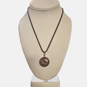 Round Cloisonne Pendant/Cloisonne Pendant with Multicolor Flower Necklace