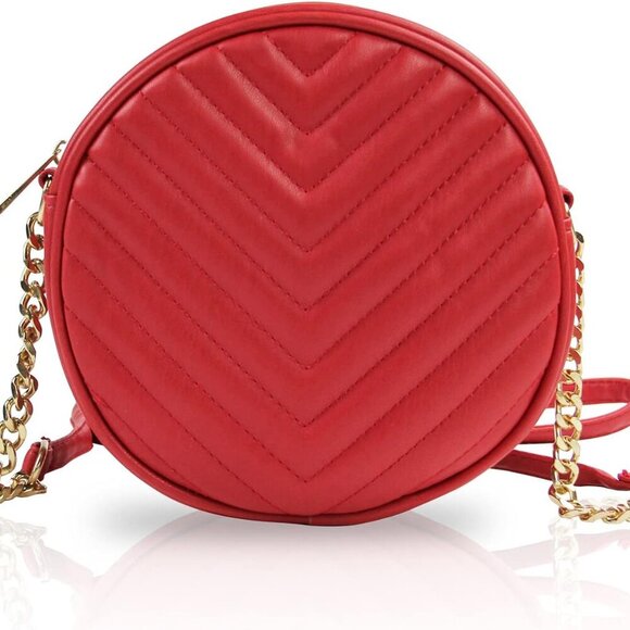 Round Crossbody Bag for Women,PU Leather Shoulder Bag with Metal Chain Strap, Ce