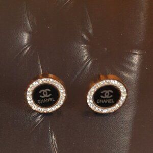 Round Crystals Stud Gold Black Earrings Women Fashion Casual Formal Jewelry Gift