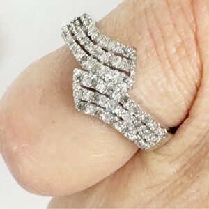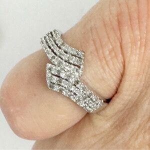 Round Cubics Bypass Ring in Sterling Silver Fashion Costume