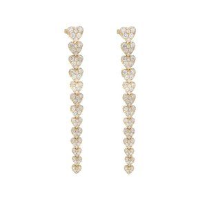 Round Cut Diamond Multiple Love Heart Long Drop Earrings 18K Yellow Gold 4.11Cts