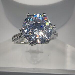 Round Cut Simulated Diamond Silver Tone Engagement Ring 4CT