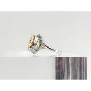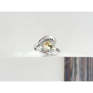 Lovely sterling silver bypass shank sterling ring. The center stone is a rich yellow cubic zirconia, it's bezel set. The shank is bypass style, the top and bottom is lined with clear cubic zirconia stones. The shank is thick but sturdy, makes it comfortable for all day. Inner shank is stamped with 925.
