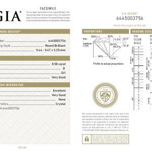 This Round shaped diamond pendant is are set in 14K White Gold and comes with a 16 inch chain - or 18 or 20, all you need to do is email us or call us). The carat weight of the Diamond is 0.58. The color is D and the clarity is SI1. The weight in grams is approximately 0. Certified by GIA, cert #: 6445003756. The cut grade of the diamond is very good. The depth is 59.5% with a table width of 0%. Our diamond jewelry arrive in a classic jewelry box.
