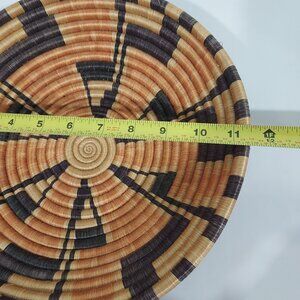 Round Ethnic Coil Handwoven Natural Grass Bowl Basket 11" Diameter 5" Deep Hang