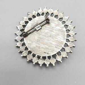 Round Faux Turquoise Brooch Pin With Flower Design Silver-Tone Finish Medallion