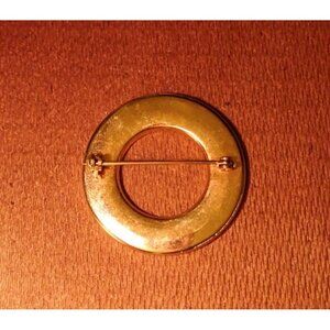 Round Gold-Tone Vintage Brooch Pin With Open Circle Design