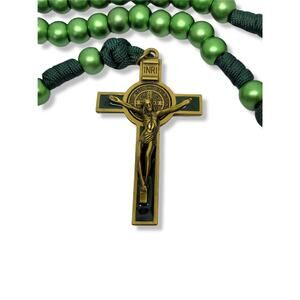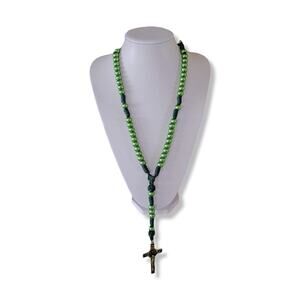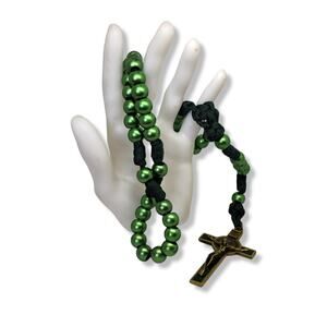 Green Celtic Rosary Round green beads with green cord knotted stations. Classic prayer beads.