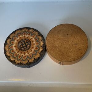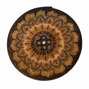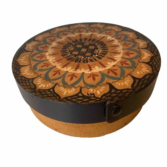 Round Hand Painted Folk Art Wooden Box Storage Vintage 6 inch Stuff Mandala
