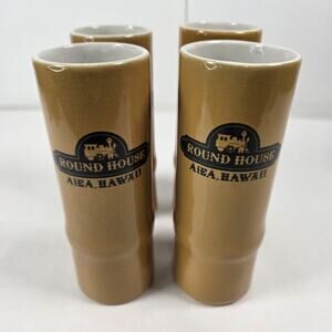 Round House Aiea Hawaii Tiki Mug 14 oz Bamboo Daga 7" Set Of 4