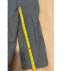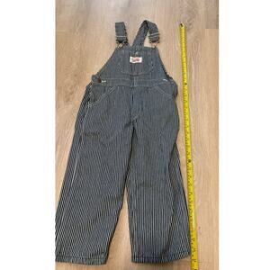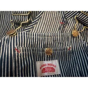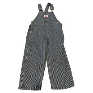 These Round House overalls are in like-new condition, with no signs of wear! They feature a classic navy hickory engineer stripe pattern.