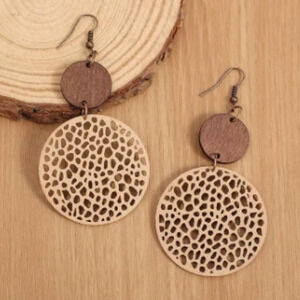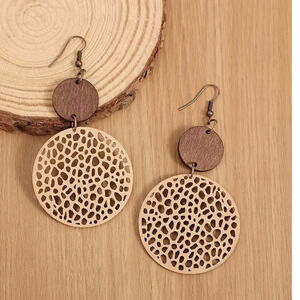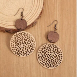 Hollowed out khaki and brown wooden and leather earrings Go with anything outfit.