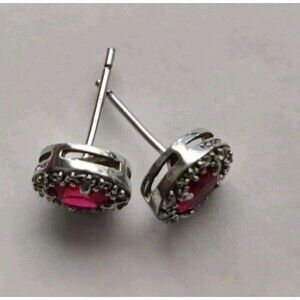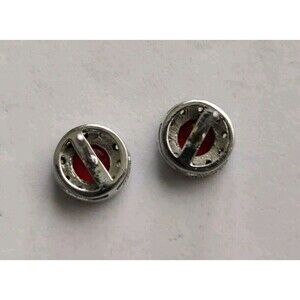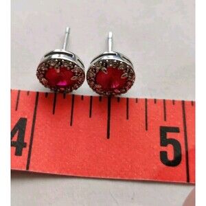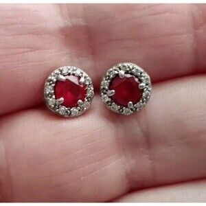 Round Lab Created Ruby Halo Stud Earrings 925 Sterling Silver No Backs