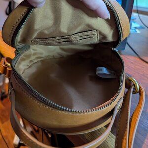 Fossil Round Ladies Purse Brown Leather And Embroidered Flowers