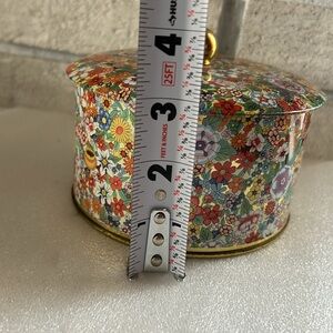 Beautiful floral container made by the Box Company in England - designed by Daher. In go condition - it does have some spot and scratches inside. Approximately 3” tall.