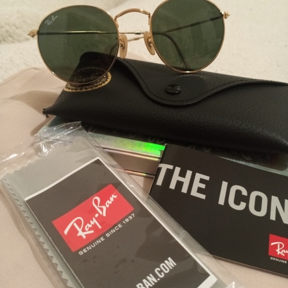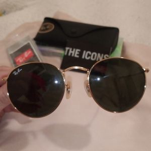 These are brand new gold metal Ray Bans. The glasses come with a black leather Ray Bans case and the authenticity card and a pamphlet, along with the cleaning wipe. These glasses are brand new and in pristine condition. Price is negotiable:)