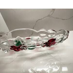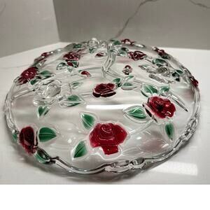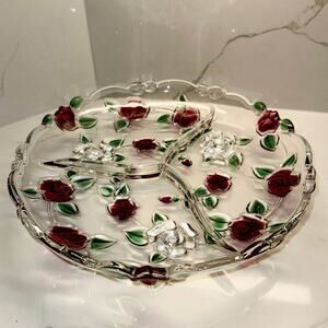 Round Mikasa Rose Garden Crystal 3-Part Divided Relish Dish 13.25” Discontinued