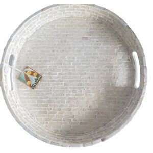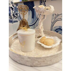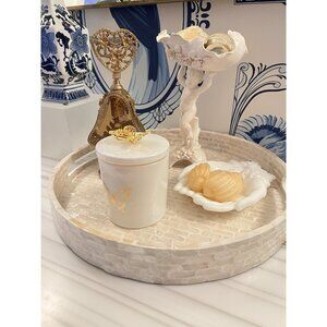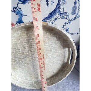 Round Mother Of Pearl Tray White Capiz Shell 16" D Ivory White Elegant Beautiful