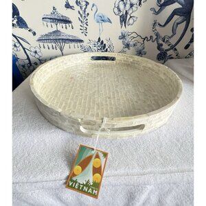 The shiny white finish and all-occasion design make it a stylish and versatile piece for serving or displaying items in your home. Handmade in Vietnam, this Pearl shell tray is a unique and original addition to your decor, perfect for any room and all occasions.