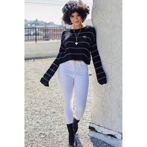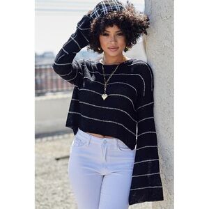 This casual striped top is the perfect top to wear when you want to chill out while looking great. The relaxed fit keeps you feeling comfy while the cropped cut shows you care about fashion. Lightweight and cozy, great for layering!