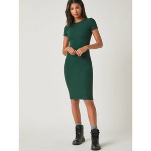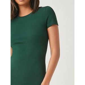 Round Neck short sleeve Bodycon midi Dress dark green