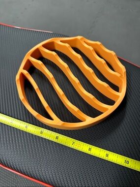 Round Orange Instant Pot Roasting Rack. Made out of silicone so it’s dishwasher safe. We just tend to roast hella big things so this doesn’t really work for us. We like to eat a lot. But it could work for you! Instant pot a whole chicken!