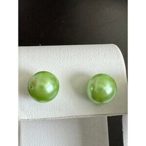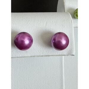 Round Pearlized Purple and Green Stud Post Earrings Set of 3