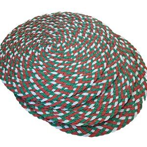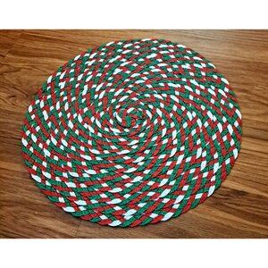 Round Placemats Christmas Colors Raffia Woven Set of 6 Festive Holiday 15"