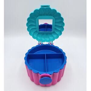 Round Plastic Multi-Colored Jewelry Makeup Case Organizer, Carry Handle, Mirror