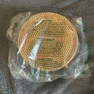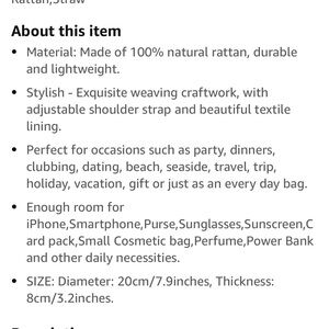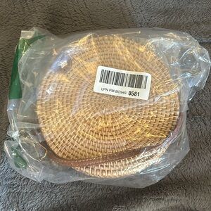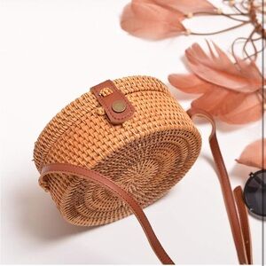 Round Rattan Bag/purse. Adjustable strap, snap close, super cute! Brand new!