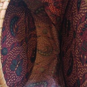 This is a cross body Round Ratton bag. A great statement purse especially for any upcoming trips somewhere sunny. The inside also has a pretty red pattern fabric which makes even more of a statement.