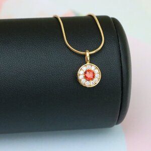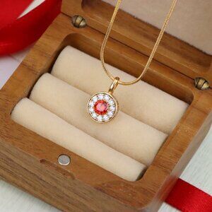 "Round Red Center Pendant with Crystal Halo in Rose Gold, XPPT1592
