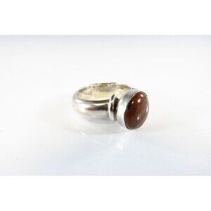 Round Red Obsidian Solitaire in Wide Band Sterling Silver Ring Setting Size 7.25