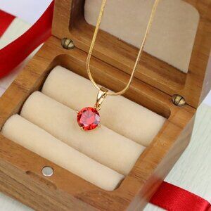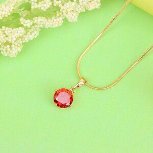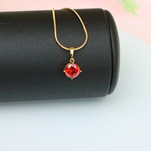 Bright and bold, this round red stone pendant is set in a sleek rose gold frame, offering a perfect mix of fire and elegance. A vibrant touch for daily wear or a special occasion.