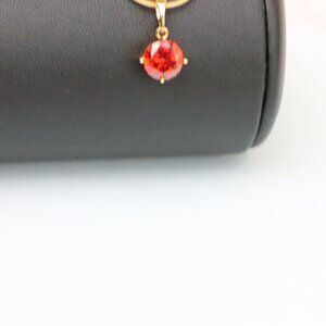 Bright and bold, this round red stone pendant is set in a sleek rose gold frame, offering a perfect mix of fire and elegance. A vibrant touch for daily wear or a special occasion.