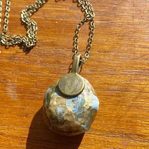 Round Rock with Ocean Water Wave Design Antique Bronze Plated 22 in Chain