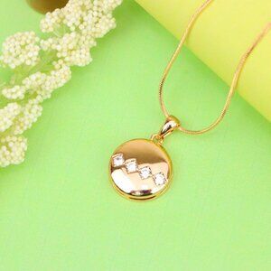 "Round Rose Gold Pendant with Zigzag White Crystal Accent Design, XPPT1255