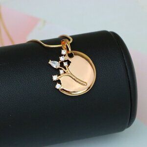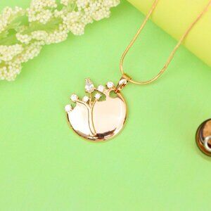 Elegant round pendant with a delicate tree design adorned with shimmering stones.