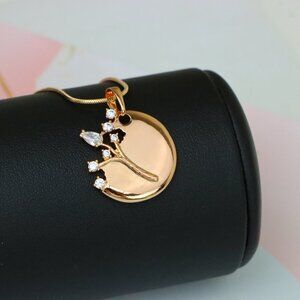 Elegant round pendant with a delicate tree design adorned with shimmering stones.