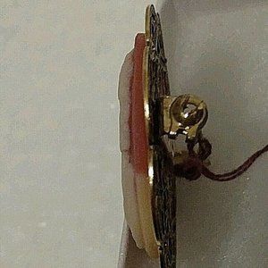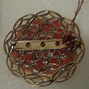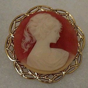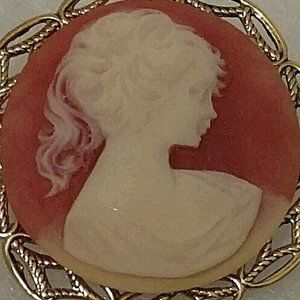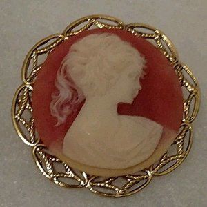 Vintage Designed Gold tone Round Salmon Cameo Silhouette Brooch Pin