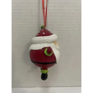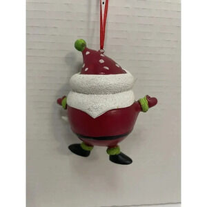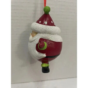 This unique Christmas ornament features Santa Claus with lime green trim, standing at 4 1/2 inches tall and 2 inches wide. The round shape and multicolor design make it a perfect addition to any holiday decor collection. Made of mixed materials including resin, this ornament is durable and long-lasting.