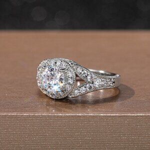 🌸Round Shiny CZ Noble Silver Wedding/Engagement Ring for Women, K808