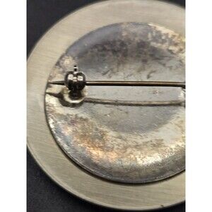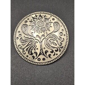 Round Silvertone Brooch Pin Flower Tree Design