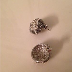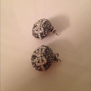 Darling & Tres Chic. Half Sphere Rounded Earring. Covered with Small Crystal Studs with background studs Silver and Off-White studs form Bow Tie. Purchased in Madrid, Spain.